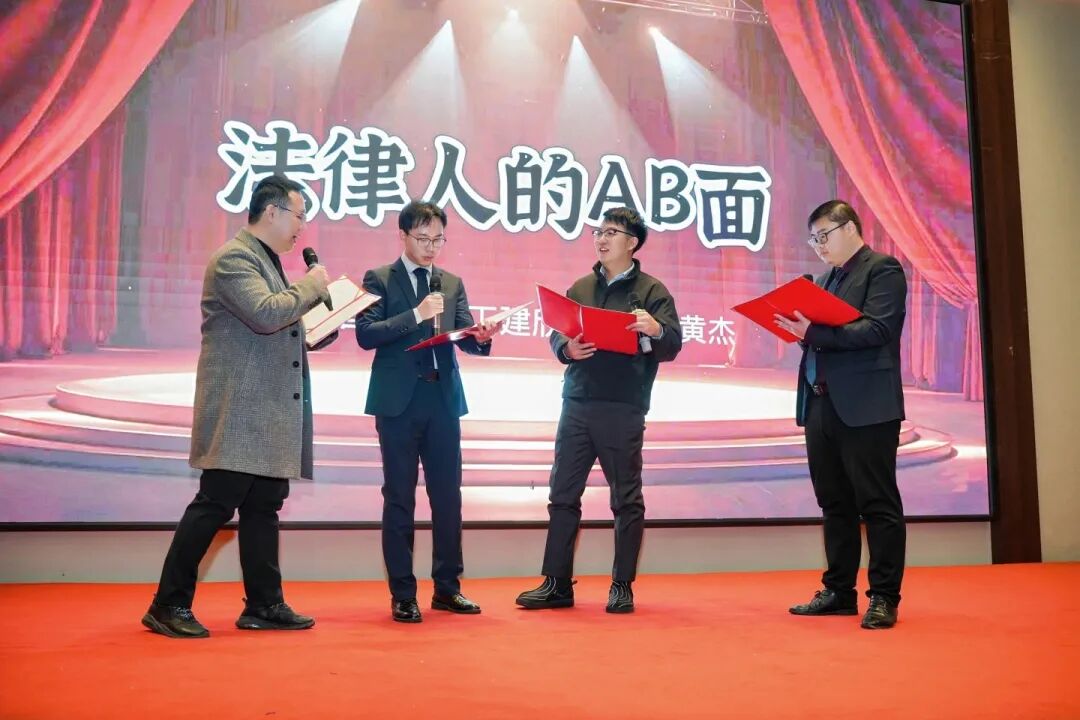 晚会上,歌曲《和你一样》传递温暖力量,《心动》诉说职业初心;情景诗朗诵《法律人的AB面》以幽默又深刻的方式,展现了律师工作中“严谨专业”与“温情柔软”的双重特质,引发全场共鸣;家属参与的歌舞串烧《少管我》《一起向未来》,更让现场充满了家的温馨。